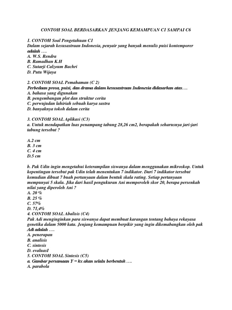 Contoh Soal C1 Sampai C6 Untuk Sd ~ Contoh Soal C1 Sampai C6 Untuk Sd - Barisan Contoh. Berilah tanda silang (x) pada huruf a, b, c atau d pada jawaban yang kamu anggap paling benar pada lembar jawaban! Soal ujian sekolah dan kunci jawaban pkn kelas vi (6) sd/mi soal dan kunci jawaban us pkn. Jika kamu memiliki keinginan untuk melakukan pengamatan tentang hal tersebut itu mudah. Untuk memupuk rasa percaya diri dan mengembangkan rasa 43. Telitilah kembali jawabanmu sebelum diserahkan kepada pengawas!