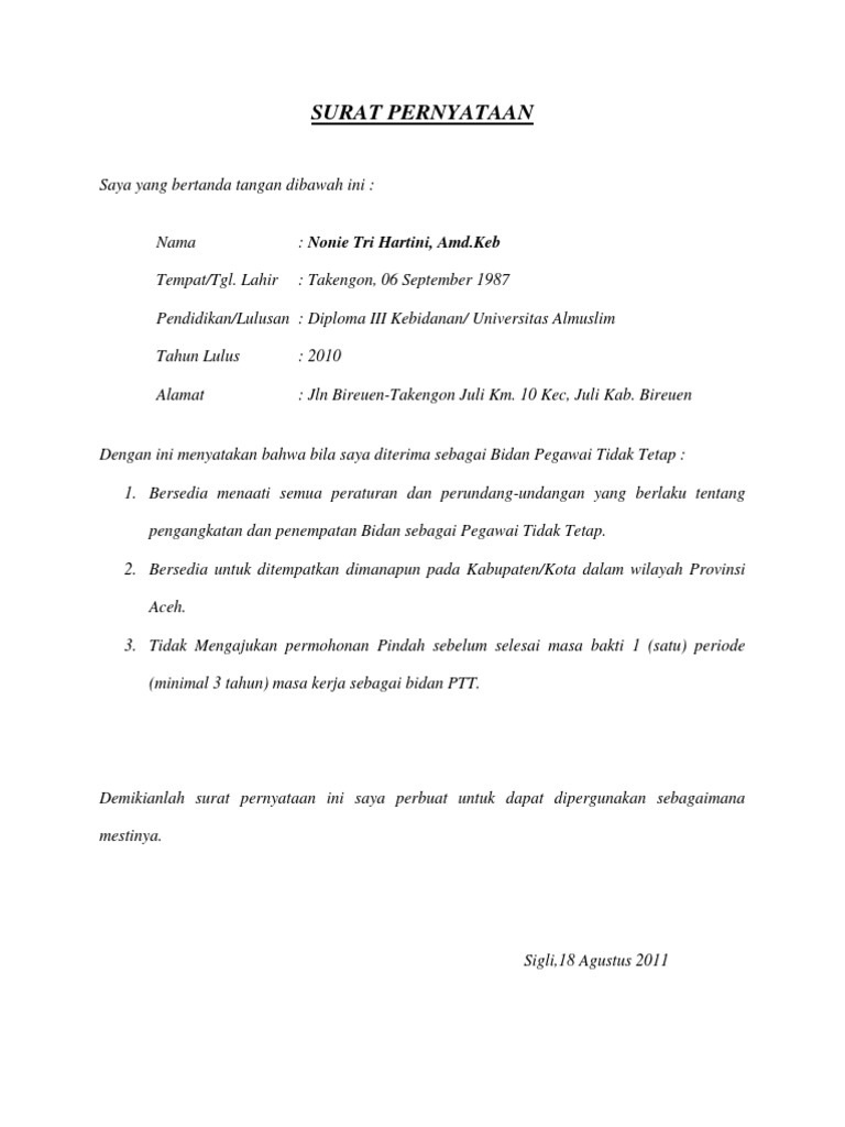 Biasanya surat ini dilengkapi dengan materai sebagai penguat kepercayaan dan agar terlihat kredibel. Contoh surat pernyataan tidak sedang bekerja. Karena sifatnya resmi, surat pernyataan ini juga menyangkut aspek legal yang bisa melibatkan peraturan hukum negara dan institusi jika di dalamnya disertakan mateai untuk menguatkan pernyataan. 5.13 contoh surat pernyataan kehilangan stnk, bpkb, sim. Contoh atas peraturan daerah yang menampung kekhususan daerah seperti qanun di provinsi nanggroe aceh darussalam.